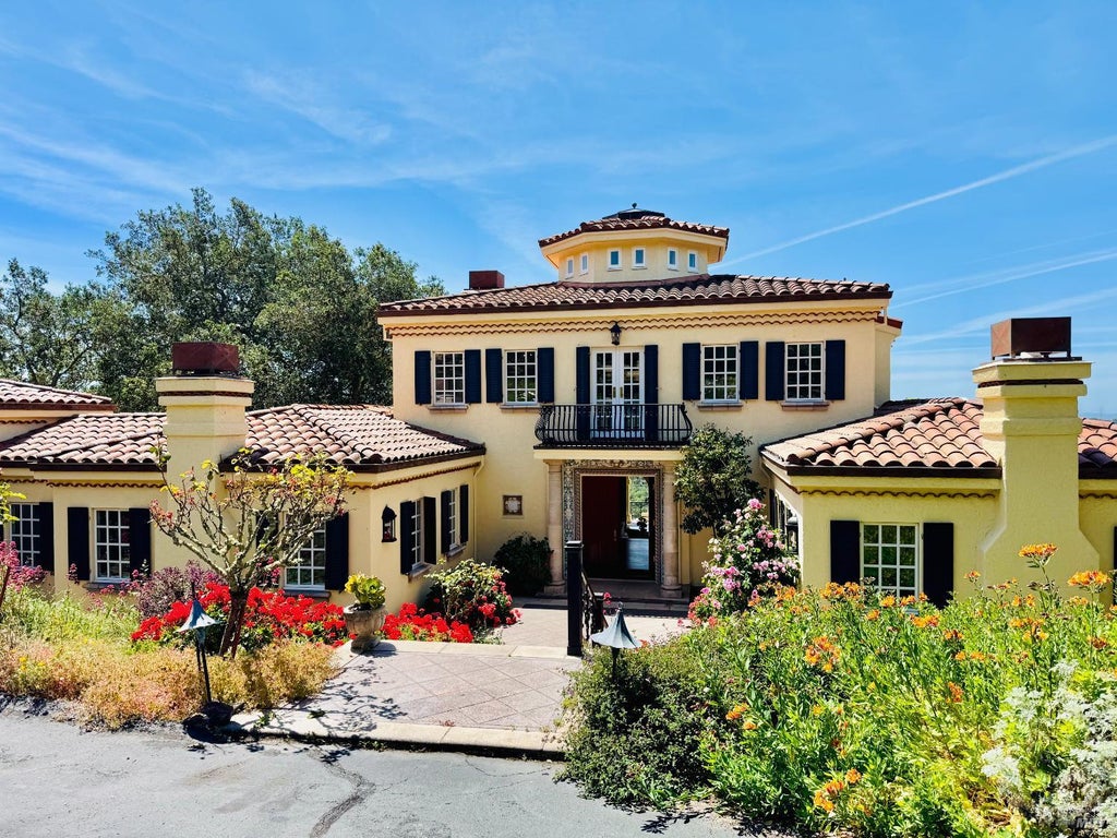 Experience the best of both worlds in this fully remodeled 4,300 sq ft Shiloh Villa with panoramic views of Mayacama Golf Club, offered with exclusive In-Residence Membership. This Mediterranean-inspired chateau sits on 8 private acres framed by heritage oaks, a rose garden, and olive and fruit trees. Step into luxury with arched doorways, French oak floors, stone finishes, and sunlit French doors throughout. The villa features 4 bedrooms and 4 baths, offering generous space for family or guests. The main floor hosts the primary suite, study/library, gourmet kitchen and family room, formal dining, breakfast room, and solarium. Upstairs are 3 guest suites with ensuite baths and access to a rooftop balcony with sweeping city and valley views. The grounds offer endless opportunities for gardening, relaxation, and entertaining with multiple verandas, an infinity pool and spa terrace, private jacuzzi grotto, and orchards. Ideally located minutes from Sonoma County private FBO, world-renowned wineries, and the posh town of Healdsburg.