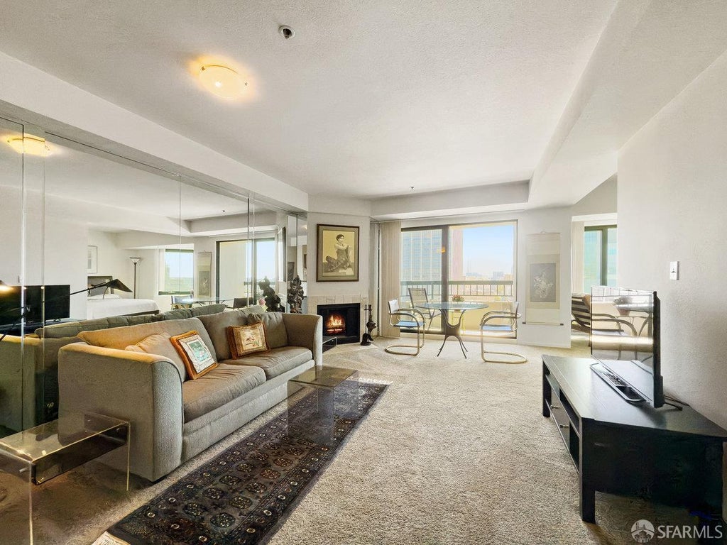 Top Floor view condominium at Opera Plaza! Private balcony with stunning views of Downtown San Francisco and the dome of City Hall. Fireplace. Great junior one bedroomfloor plan and closet space. Opera Plaza is a well managed complex with numerous amenities including 24 hour private security staff, on site management, heated pool and spa, concierge, fitness center, racquet courts and more! On-site optional leased parking. Best central San Francisco location is on transit line and close to freeways. Walking distance to great restaurants and shopping in Hayes Valley. Close to major cultural venues including the Opera House, SF Jazz, and Davies Symphony Hall. Coffee shop, cinema, bookstore, UPS store and restaurants on site.