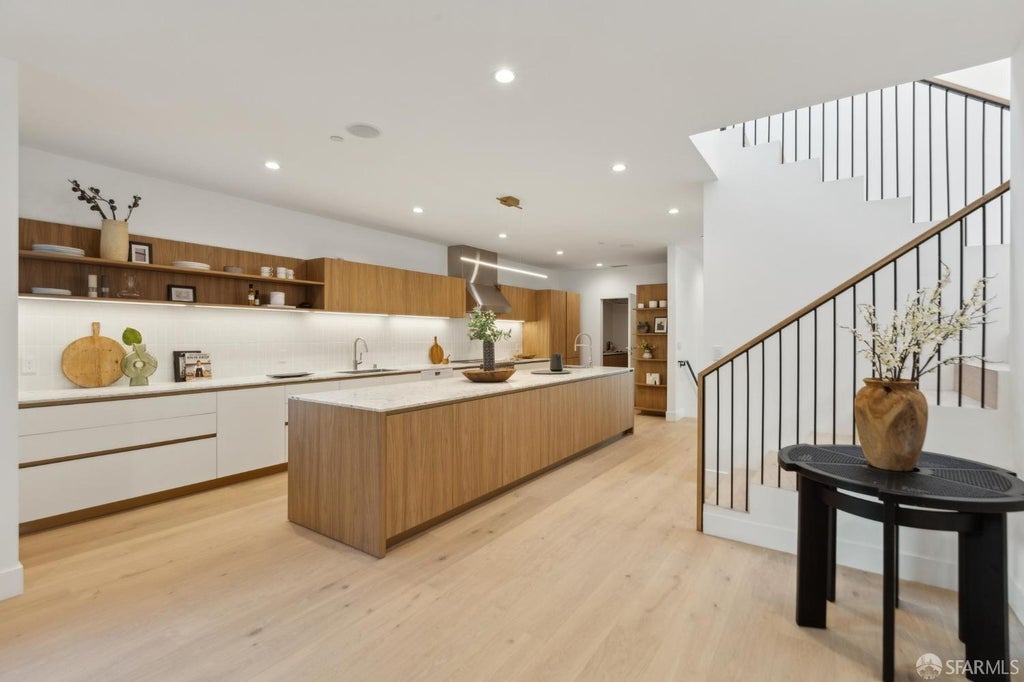 Experience modern luxury w/ this newly rebuilt 7-bed, 5.5-bath residence a block from Precita Park. Located on Bernal Heights north slope & completed in May 2025, this exceptional 2-unit compound offers 3 lvls of luxurious indoor-outdoor living, including over 1000 sqft of south-facing flat landscaped outdoor space.The main residence spans approx 3,600 sqft, boasting soaring ceilings & designer finishes throughout. The chef's kitchen, w/ its 14ft island, Italian terrazzo countertop & custom cabinetry, seamlessly flows into the dining area & family room. Expansive Marvin windows & doors flood the space w/ natural light & open onto the beautifully landscaped backyard. This lvl also includes a formal LR, a lounge w/ fireplace, a library & two stylish PR. Designed around a central media room, the upper flr is home to the 4 generously sized BD, 2 of them en-suite. All equipped w/ their own climate control unit, they share 3 BA, all w/ heated floors. The grand primary suite features a large den & a pvt patio, a spacious walk-in closet & an ensuite bathroom w/ a soaking tub & step-in shower. W/ independent street access, the lower lvl features a fully independent 2nd unit, spanning 1,367 sqft w/ 3 BA, 2 full BA w/ heated floors, a kitchen, laundry & backyard access.
