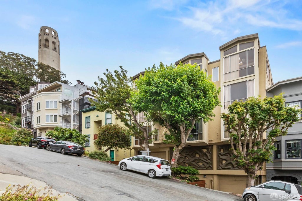 Enjoy film-worthy views from this 1 bedroom top-floor condominium. This sunny home is the perfect starter or pied-e-terre that's tucked away on a tree-lined block, adjacent to North Beach dining, parks and nightlife. The living room with vaulted wood-paneled ceiling and cozy, wood burning fireplace welcomes you and is sure to inspire creativity. Enjoy your coffee under the gaze of the iconic Coit Tower from the tall windows in the living room, or relax and ponder the day's possibilities as you enjoy Golden Gate Bridge and panoramic City views from the bedroom. Stainless steel appliances including stove/oven, microwave, refrigerator with water/ice, and Miele dishwasher. 2 closets, bathroom with Toto Washlet bidet. Electric baseboard heating. Deeded 1-car parking. Shared outdoor patio/gardening space and laundry. Located at the top of Greenwich Street on a quiet cul-de-sac under the world-famous Coit Tower. This home enjoys easy access to Pioneer Park, Coit Tower and all the charm, history and convenience of both Telegraph Hill and North Beach neighborhood cafes, restaurants, bakeries, shopping and more. Washington Square Park, Joe DiMaggio Playground, Liguria Bakery and Mama's on Washington are all just blocks away. Well-maintained and professionally managed building