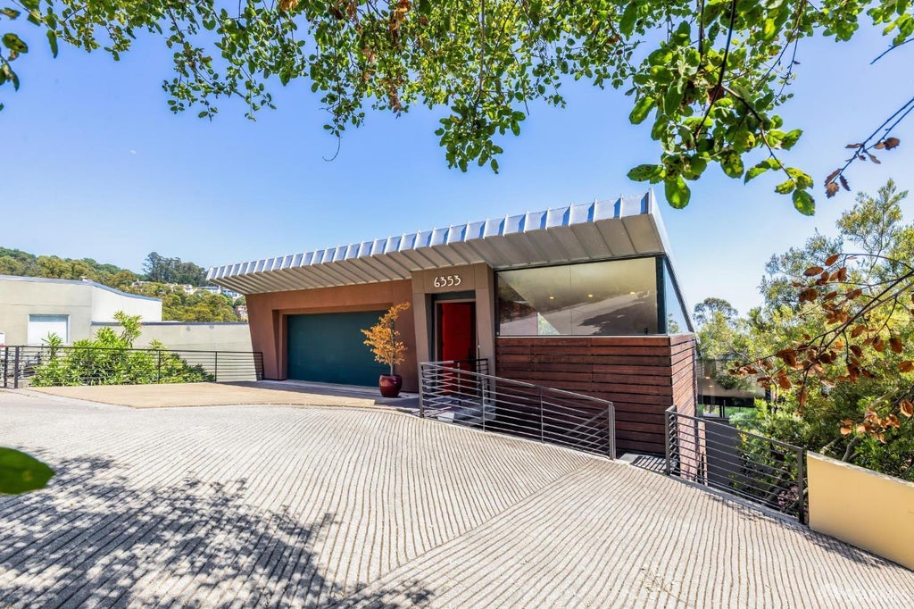 Buy now at $1,925,000! This is your chance to own a exceptional property at a great price! Built by award-winning designer Art Busse. Completed in 2001, this 4,046 sq ft custom residence was inspired by Renzo Piano's coastal studio in Italy. Set on nearly 0.25 acre, the 4-bed, 3-bath home blends architectural vision with livable comfort. Interiors feature Brazilian cherry wood floors, rich natural textures, and 2 floating staircases connecting all 3 levels. The top floor includes the entry and two-car garage with EV charging. The main level offers a chef's kitchen, dining and living areas, a bedroom and full bath all centered around a 2-sided fireplace. A deck off the dining room enhances indoor-outdoor flow. Downstairs, the primary suite, 2 bedrooms, full bath, and a large family room open to a balcony with panoramic Bay and hillside views. Additional features include Toto bidet toilets in all 3 baths, high-end appliances, zoned A/C and heating, laundry room, 34 solar panels, and ample storage. Set in one of the area's most desirable hillside neighborhoods, Skyline Blvd offers privacy, natural beauty, and quick access to regional parks. Just 5 minutes drive from Montclair Village and 15 mins to UC Berkeley.