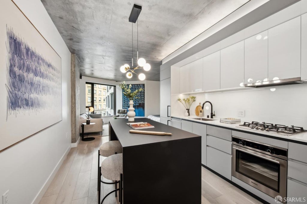 This is an extra large Junior 1 BR/1BA exceptionally appointed with a luxurious bathroom and sophisticated finishes. Includes upgraded hardwood flooring and kitchen island, and a stunning light in the kitchen above the island. Full service building with 24 hour concierge, fitness center, residents' lounge and breathtaking rooftop. Located in the heart of San Francisco's Mid-Market neighborhood, Serif is a new 12-story condominium complex with 242 for-sale residences. Serif also shares its space with the sumptuously hip The Hilton hotel, retail and dining experiences. Serif illustrates the revitalization of a rapidly changing section of Market Street. Featuring prime walkable access to the theater, art, retail, dining and nightlife Serif enables residents to be amidst San Francisco's new hub of entertainment. The interior design combines angular forms with raw materials and finishes, such as concrete and wood, the palette blends striking black and white background surfaces with highlights of warm, natural hues and finishes. Onsite parking is not available. All images are representative of the development.