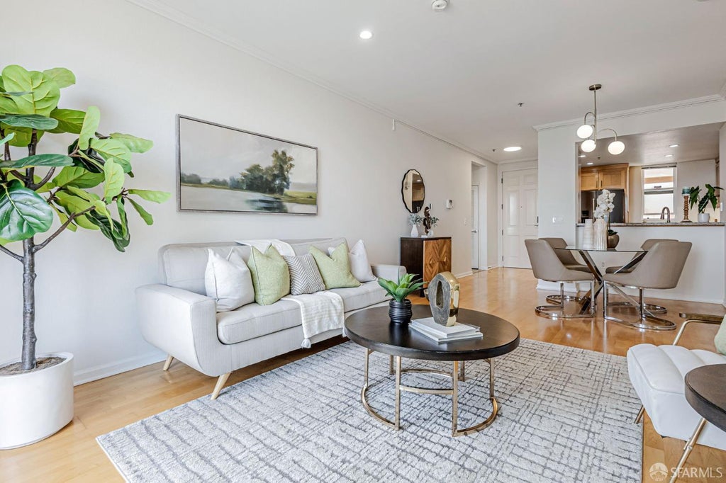 Welcome to 501 Crescent Way, a top-floor condo offering bright, open living and scenic views of the San Francisco Bay. This 2 bedroom, 2 bath home combines comfort, functionality, and a peaceful setting. The living and dining area is filled with natural light from large windows and opens to a private balcony, ideal for taking in the morning sunrise. The kitchen features stainless steel appliances, a gas range, and generous cabinet space, making it both stylish and practical. The primary bedroom includes a walk in closet and an ensuite bathroom with dual vanities. A second bedroom, full bath, and in unit laundry add flexibility and convenience. Additional amenities include one secure parking, a fitness center, and walking trails. With easy access to MUNI bus routes and major freeways like 101, commuting and exploring the Bay Area is simple and efficient.