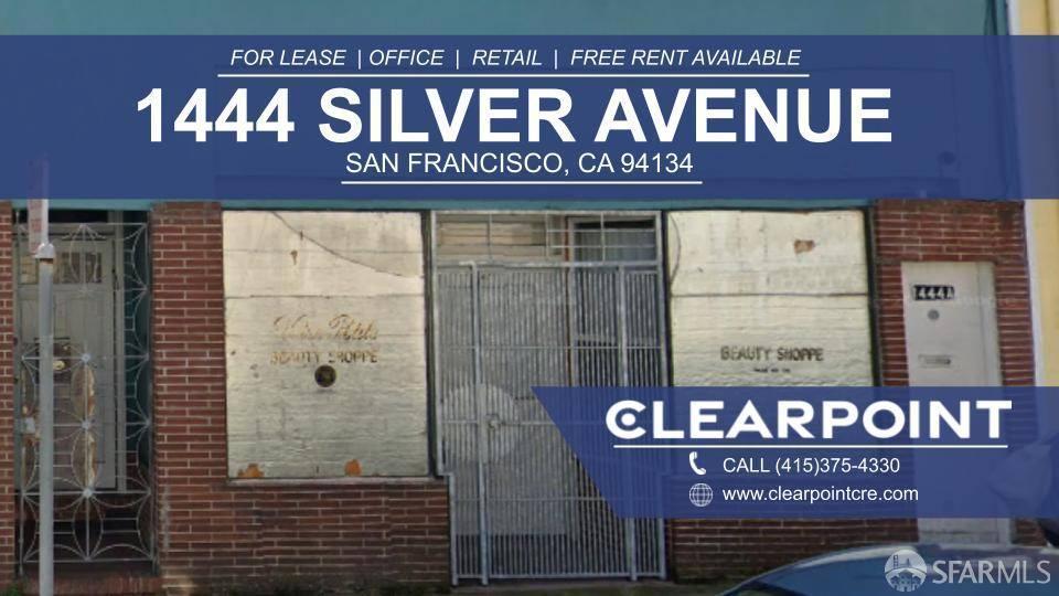 ADDRESS: 1444 Silver Ave San Francisco, CA 94134 AVAILABLE SPACE: +-500 Square Feet RENTAL RATE: $5/Square Foot/Month, MG Lease MONTHLY RENTAL RATE: $2,500/Month AVAILABLE: Immediately USE: Cafe/Flex/Retail BUILDING ATTRIBUTES ✔ High Visibility ✔ Spacious Open Floor Plan ✔ Large Display Windows ✔ 2 Restroom Facilities ✔ White Shell Condition For more information, contact: CLEARPOINT EXCLUSIVE LISTING 📞 Call/Text Rodel: (415) 375-4330