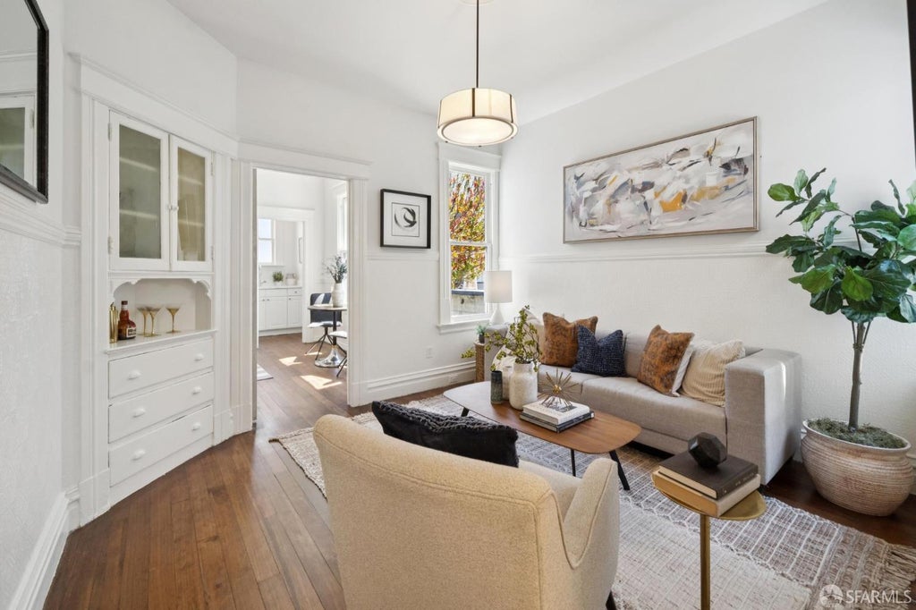 Own and enjoy a gorgeous piece of history for the price of rent! Seize the opportunity now and you will be glad! Top floor, with windows on three sides, this flat has tons of light with great period details. Front bedroom features a bay window & large closet. There is a bright eat-in kitchen refreshed with new cabinets, counter tops and open shelves as well as a utility room for an office or extra storage. Just past the back door, a landing provides space for a small gas grill where you can cook dinner as you overlook the lush shared garden. While you cook, others can keep you company from the adjacent living room, replete with an original built in, perfect for displaying a treasured collection or two. The flat throughout has newly refinished floors, new paint and mostly new designer lighting. The bathroom, with a spa-like original clawfoot tub, has been renovated with new tile floors and vanity. Shared laundry is accessed in the basement right next to a private storage room where you can keep all your gear and bikes. But the best thing about 39 Moss might be the location. From museums, theaters both movie and live, sports venues, to shopping and transit, you can enjoy the best of what San Francisco has to offer living on lovely and special Moss St.!