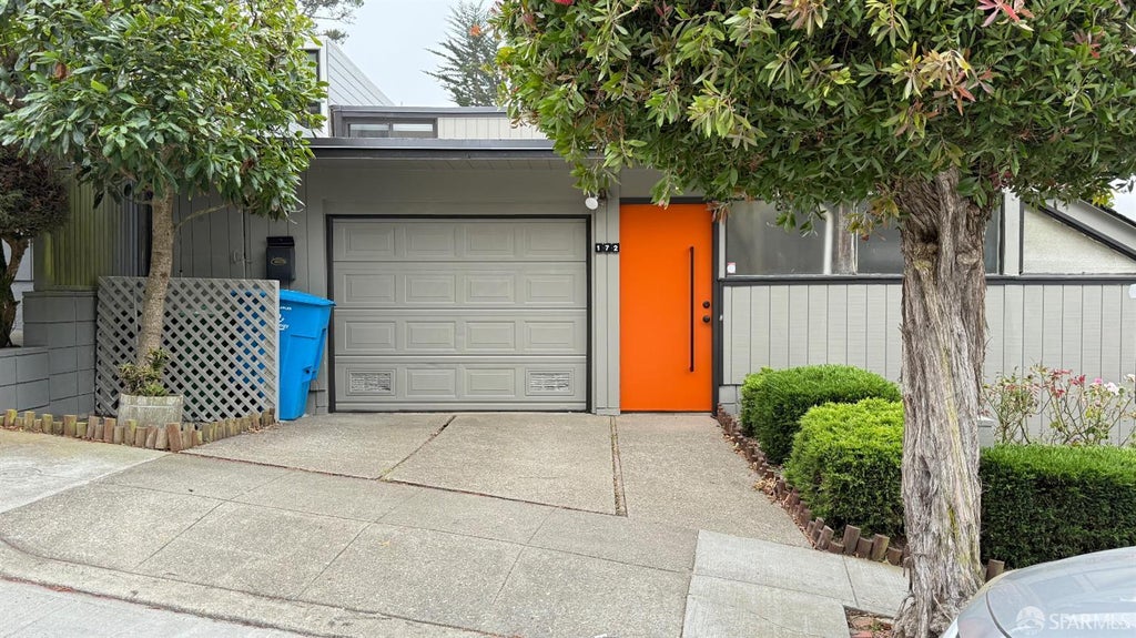 Mid-Century five-bedroom Eichler home in Diamond Heights. Indoor outdoor living at its finest. The main level is centered around indoor/outdoor living and features a large living room with fireplace, dining room, fifth bedroom, kitchen with breakfast nook and full bath. The tranquil South-facing garden offers a wood patio and mature vegetation offering seclusion and canyon views. The second level consists of a primary bedroom with en suite bath, walkout balcony and a massive closet with vanity, three additional bedrooms, one guest bath and laundry closet. The home also offers a one-car garage, abundant storage throughout and a courtyard entry. Great opportunity for a true Eichler lover. This is a virtual representation of the property staged with furniture. It is an approximation and not an actual representation of how the property currently looks.