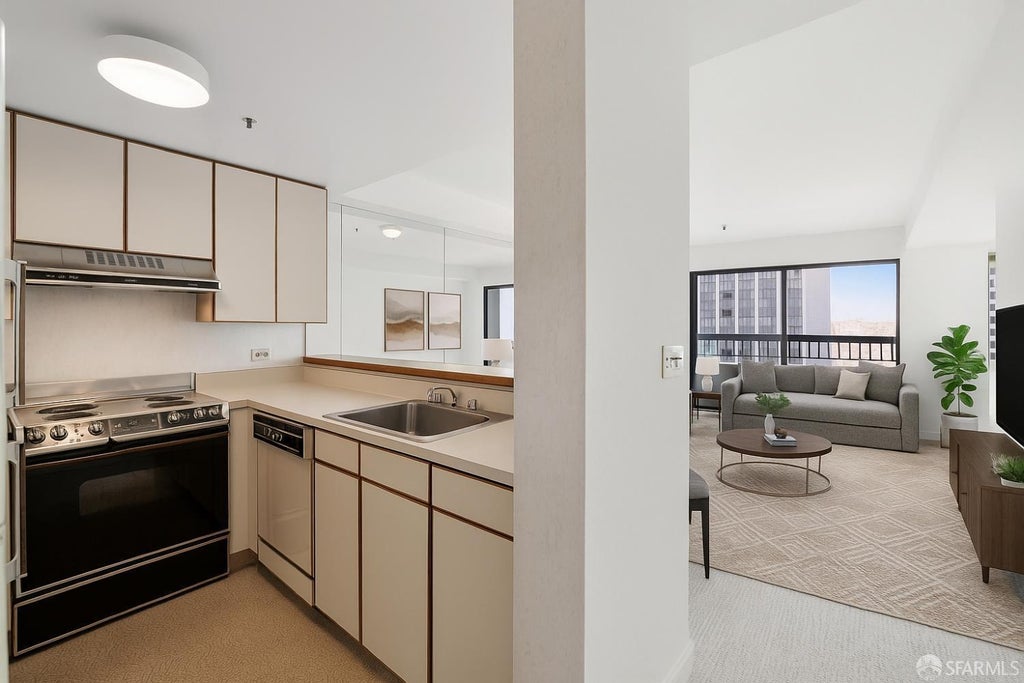 Enjoy breathtaking views of Downtown San Francisco and the iconic City Hall from your private balcony in this light-filled condominium. Featuring a smart floor plan with an open kitchen, a junior 1-bedroom, ample closet space, and a mirrored wall to enhance it's size, this home combines comfort with convenience. Brand new carpet and paint throughout. Opera Plaza is a professionally managed community offering a wide range of amenities, including 24-hour security, on-site management, a heated pool and spa, concierge service, a fully equipped fitness center, racquet courts, and more. Optional leased parking is available on-site. Located in the heart of San Francisco, this prime location offers easy access to public transit and freeways and you're just moments to the vibrant Hayes Valley neighborhood, filled with top restaurants and boutique shopping, and close to premier cultural landmarks such as the SF Opera House, SF Jazz Center, and Davies Symphony Hall. On-site amenities include a coffee shop, cinema, bookstore, UPS store, and dining options- everything you need, right at your doorstep.