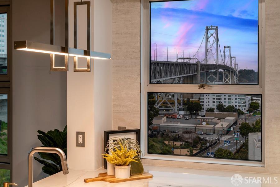 Bay Bridge, water & city view 2BR home at 301 Bryant. Designer remodel! Unique features include extra high ceilings, exposed concrete, hardwood flooring, custom window treatments & custom lighting throughout. Cook in the contemporary chef's kitchen with waterfall quartzite countertops, stainless steel appliances, custom cabinetry, and panoramic views. Enjoy two spacious bedrooms and two completely updated designer bathrooms featuring quartzite countertops with Porcelanosa tile throughout. In-unit washer/dryer and secure parking complete the home. The award-winning boutique building is in a prime South Beach / East Cut location within walking distance to the Embarcadero waterfront, the Ferry Building, the Financial District, sports venues including Oracle Park, and more. Easy access to public transportation, 101, 280, 80 and the Bay Bridge.