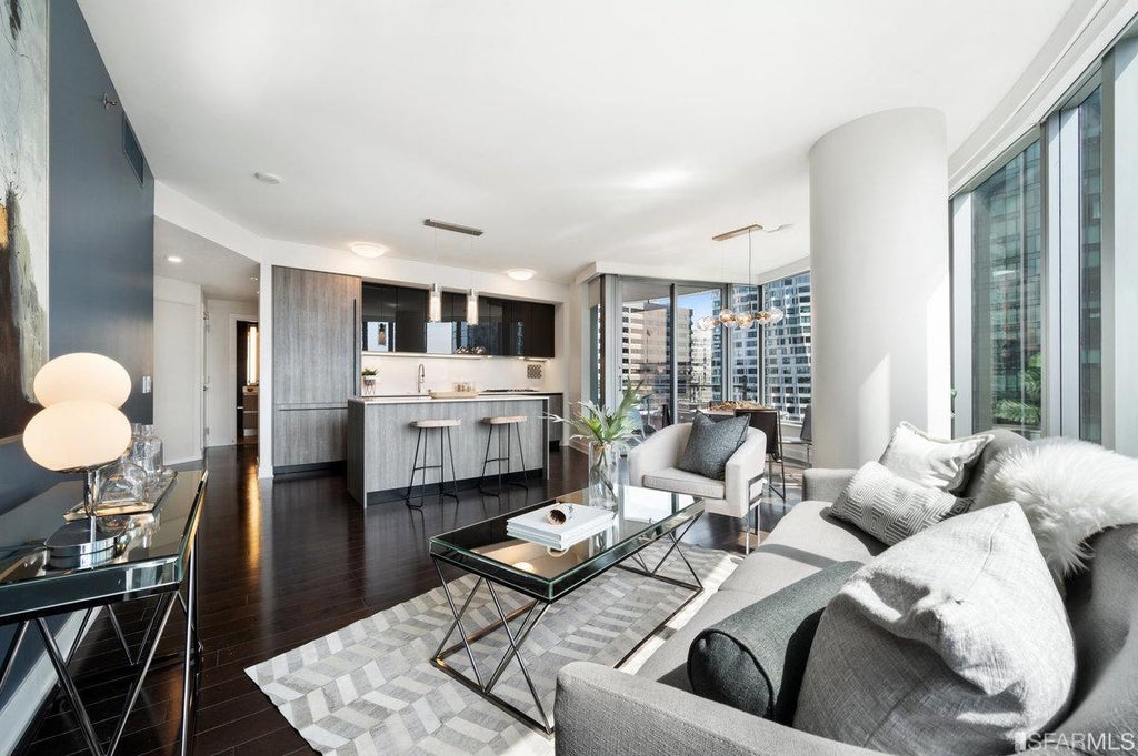 201 Folsom St #12E is an exquisite 2BR/2BA condo at the prestigious Lumina building in sunny South Beach. Graced by walls of glass, the open floor plan is flooded with natural light and offer imposing views of the bay, bridge and city skyline. The great room features a chef's kitchen with Caesarstone quartz /Siematic Cabinetry/Gaggenau-Bosch appliances, a dining area & walk-out balcony with SE exposure. The spacious primary bedroom has a walk-in closet and is highlighted by a spa-like ensuite bath with double sinks, separate shower/tub and built-in linen cabinets. At the other end of the hallway, you'll find a secondary bedroom that is perfect for guests or an office, in-unit laundry and additional custom storage solutions. Smart-home ready with Somfy powered roller blinds, black out drapes and Lutron/Kasa dimmers. 1-car valet parking. World class amenities include a 24/7 front desk, fitness center, lap pool, owner's lounge, roof deck, theatre, dog washing station, game room, play room and much more. Situated in a premium locale with easy walkability and ultimate convenience, experience the best of San Francisco living at this premium residence.