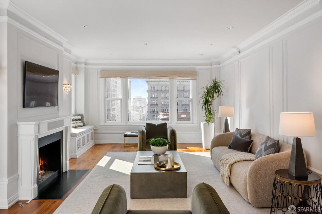 Bathed in natural light from its enviable southeast corner position, Residence 504 combines timeless elegance with modern sophistication. Oversized windows frame sweeping city vistas, including Huntington Park and Grace Cathedral and peek-a-boo views of Coit Tower. With three bedrooms and three full bathrooms-two of which are ensuite-the home's grand proportions are immediately evident. A formal dining area, expansive living room anchored by a gas fireplace, and a chef's kitchen with a large peninsula counter create a floor plan ideal for both entertaining and daily living. The kitchen features a full suite of Thermador appliances, complemented by custom cabinetry by Korts & Knight and Blizzard Caesarstone countertops. Extensive crown moldings and picture rails throughout the residence emphasize the home's architectural pedigree, while hardwood floors, recessed lighting, and surround sound in the living room enhance comfort and refinement. Additional features include in-residence laundry, one-car parking, and private storage. Residents of Park Lane enjoy a 24-hour doorman, grand lobby with a viewing garden, and fitness room. Perfectly positioned atop Nob Hill and surrounded by San Francisco's most iconic landmarks, from the Pacific Union Club to the Fairmont and Mark Hopkins.