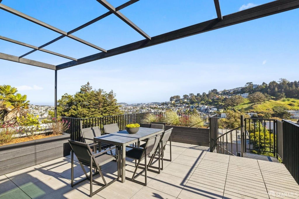 Views for days! Experience modern luxury in this newly built 7-bed, 6.5-bath home in Noe Valley. Completed in 2022, this 2-residence elevator compound blends sophistication with comfort with 5 levels of indoor-outdoor living featuring stunning southern & Bay views and over 800sqft of outdoor spaces. The main home features a grand-scale open floorplan w/ oversized living room and terrace w/ retractable glass walls, a chef's kitchen & powder room. The primary suite occupies the top floor & includes a den w/ wet bar, 2 decks, 2 walk-in closets, and a spa-like bathroom. The middle level boasts the sleeping quarter w/ 3 en-suite bedrooms, office & laundry. A 3-bed, 2-bath in-law unit offers flexibility for home office/guest quarters/rental income. Fully electric eco-friendly home w/ solar panels, heat pumps, air filtration system & A/C. 2-car garage & storage. Beautifully landscaped yard. Designer finishes throughout. Conveniently located near cafes & shops on Church & 24th St., Billy Goat Hill, Glen Park canyon, public transport and 101/280 freeways.