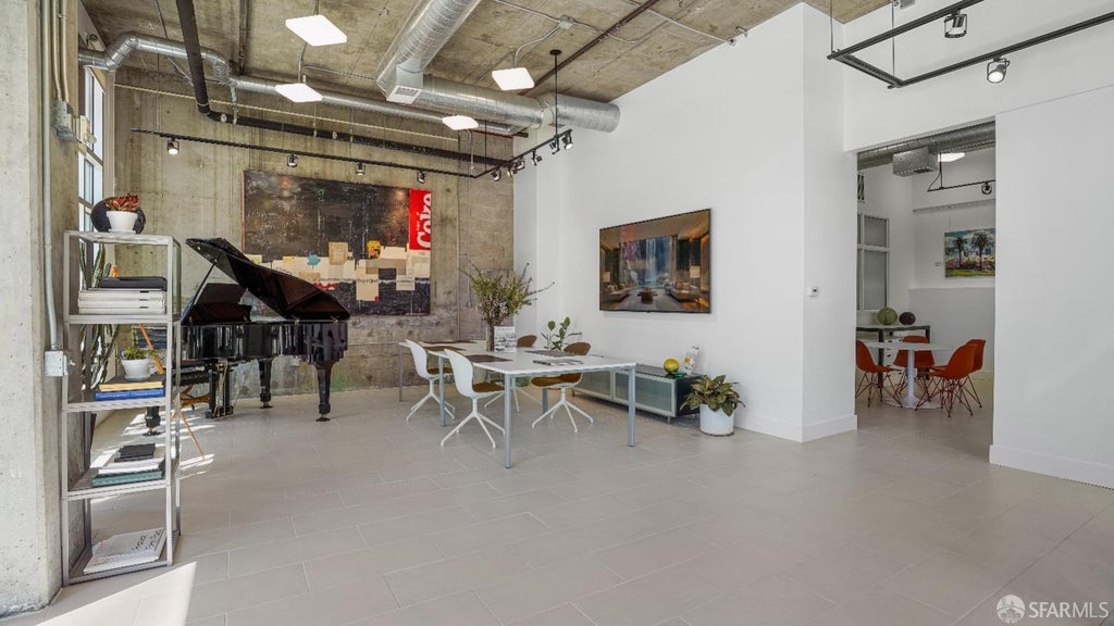 Located at 200 Brannan Street #100, this ground-floor corner commercial condominium is situated in San Francisco's dynamic South Beach district. The 1,194 square foot unit has soaring ceilings, an open-concept layout, expansive windows, exposed concrete walls, and a thoughtfully designed bathroom. This street-level commercial unit is ideal for retail or office uses and comes with four deeded parking spacesan exceptional advantage in San Francisco's limited parking environment. Qualified buyers can take advantage of Small Business Administration (SBA) financing, which allows entrepreneurs and business owners to purchase commercial real estate with significantly lower down payments and favorable terms compared to conventional commercial loans. This SBA eligibility enables business owners to acquire the property with as little as 10% down, making ownership more accessible for growing enterprises. The unit is situated in a 2004-built residential tower which houses 240 condominium units above the commercial ground floor. Building amenities include 24-hour concierge and doorman services, a cutting-edge fitness facility, and a beautifully landscaped private courtyard.