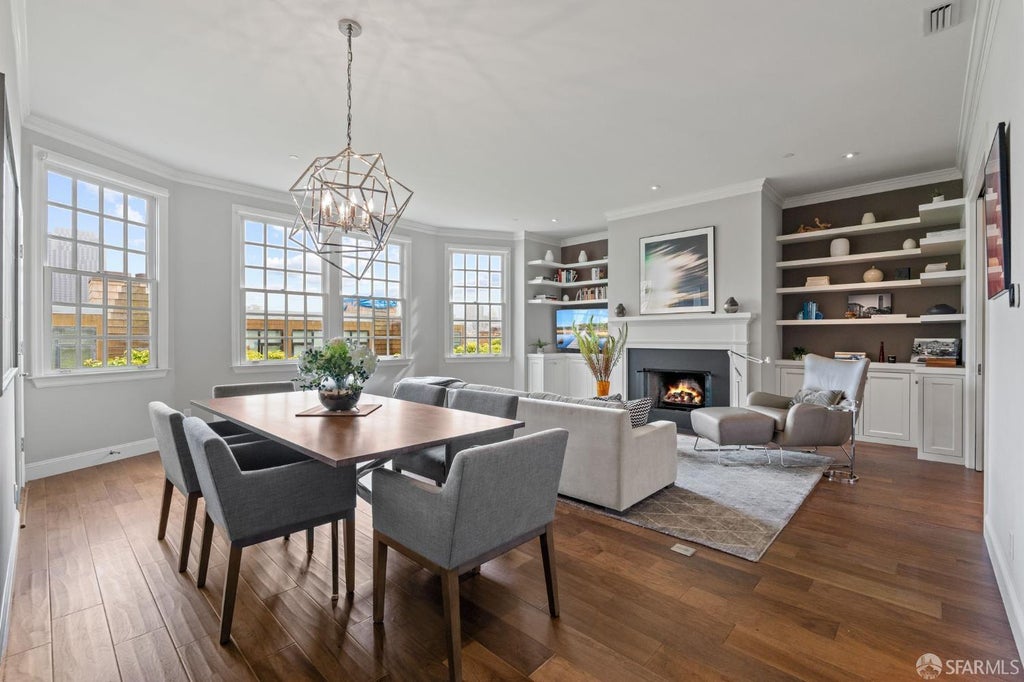 Sophisticated living, peaceful and serene in the heart of San Francisco. Nestled near iconic landmarks; Coit Tower and The Filbert Steps, just a few blocks from the Financial District, world-class dining, the Ferry Building, and endless city adventures. 116 Alta Street transforms the concept of urban living into a home that has been thoughtfully remodeled and extensively updated. The expansive primary suite boasts a cozy fireplace, a comfortable seating area, a wall of built-in cabinets and shelving, plus office space. Indulge in the spa-like bathroom featuring a soaking tub, double sinks, and a separate water closet. For your convenience, the extra-large walk-in closet includes a full-size washer and dryer. The upper level impresses with 10' ceilings and a spacious living/dining area adorned with a fireplace and generous natural light, complemented by downtown views. The light-filled kitchen is equipped with Bosch appliances and custom cabinets, opening up to a private yard. The second bedroom features pocket doors, allowing it to convert into a home office or gym. A custom full bathroom completes this level. What truly sets this home apart is the private roof deck, offering stunning views of downtown San Francisco. Garage leased parking +/- 500' on Union Stree