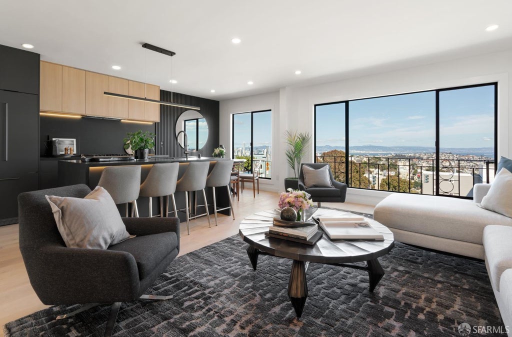 Nestled in Twin Peaks at the crossroads of Eureka Valley & Noe Valley, this one bedroom & one bathroom residence at 3890 Market Street delivers modern luxury with bold design, refined finishes & unforgettable views. Fully reimagined from top to bottom, it offers the sophistication of a high-end residence with the intimacy of a boutique property. Expansive interiors are filled with natural light from skylights & all-new windows, framing dramatic Bay, City & hillside vistas. At the heart of the home, a 7-foot quartz waterfall island anchors the kitchen, complemented by an integrated Viking appliance suite for seamless design & professional-grade performance. The bathroom is crafted with Porcelanosa surfaces, cabinetry & fixtures, bringing spa-caliber refinement to daily life. The residence has been fully renovated with new plumbing, electrical & windows, dual split AC/heating systems & in-unit washer/dryer hookups for everyday convenience. Engineered oak flooring, sleek finishes & thoughtful upgrades complete the home. Dedicated garage & carport parking, including the rare advantage of two spaces, makes this offering even more exceptional. Low HOA dues $250/month. Just moments from Castro nightlife, Noe Valley dining/cafs, parks & Muni at Castro Station, this is modern SF living.