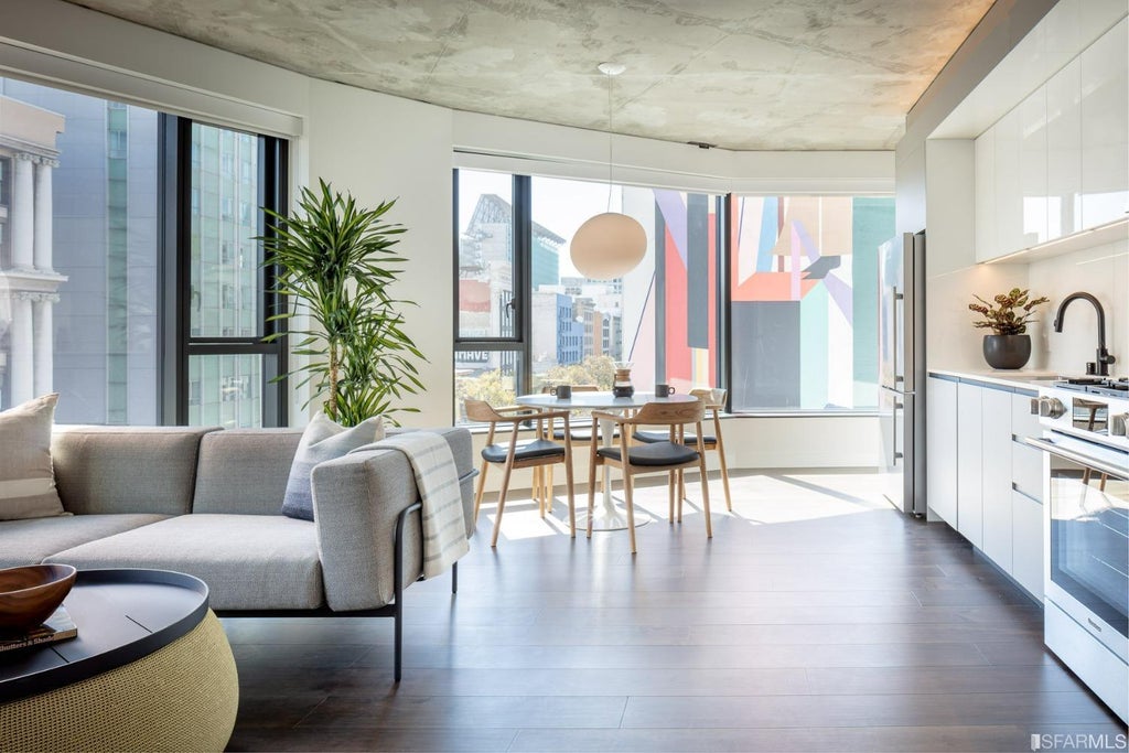 Residence 715 is a sophisticated 2BR/2BA home with a split bedroom plan, a spa like primary bathroom retreat, a well appointed kitchen with luxurious finishes, and a wall of south facing windows. The home includes, stunning hardwood floors, closet systems, a washer and dryer and window treatment. Parking is available for purchase. Located in the heart of San Francisco's Mid-Market neighborhood, Serif is a new 12-story condominium complex with 242 for-sale residences. Serif also share its space with the sumptuously hip The Hilton International hotel, retail and dining experiences. Serif illustrates the revitalization of a rapidly changing section of Market Street. Featuring prime walkable access to the theater, art, retail, dining and nightlife Serif enables residents to be amidst San Francisco's new hub of entertainment. The interior design combines angular forms with raw materials and finishes, such as concrete and wood, the palette blends striking black and white background surfaces with highlights of warm, natural hues and finishes. All images are representative of the development.
