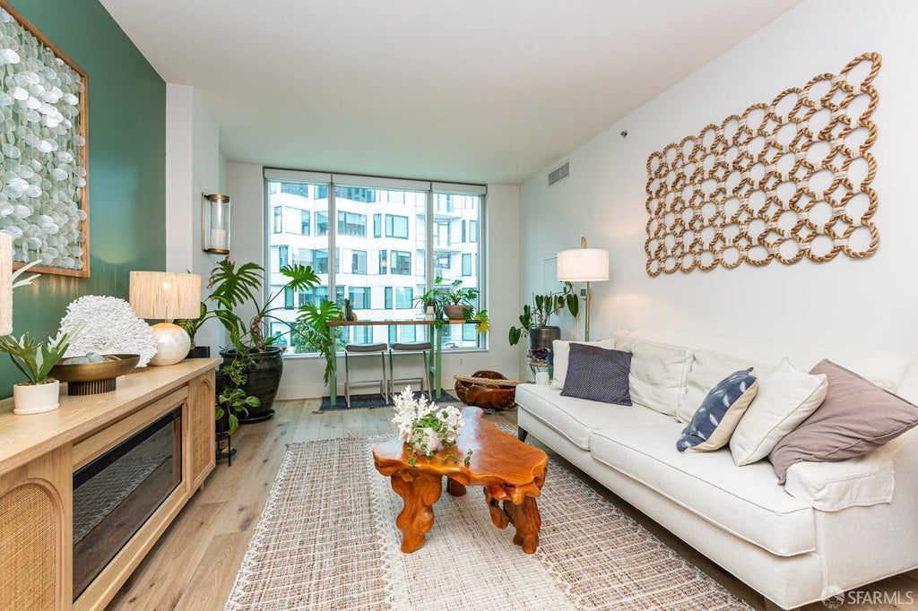 Ethereal - The Infinity San Francisco Abode - Step into this exquisite 1 Bedroom, 1 Bathroom home with an expansive den: where serenity and organic sophistication blend seamlessly. This rare find offers views "Feel the Vibe of the City Without Ever Leaving Home." Grand foyer opens to a spacious living area, framed by floor-to-ceiling windows, inviting natural light. New Oak floors throughout. Entertainer's dream kitchen: featuring custom rustic wood bar extension, premium Thermador refrigerator, Bosch gas cooktop & newer Miele dishwasher. With abundant counter space, it's the true heart of the home. Specialized water filtration system & new age touch kitchen faucet are next level. The generously sized primary suite is a tranquil retreat with a sitting area, floor-to-ceiling windows, and large walk-in closet. Enjoy a wellness bathroom with soaking tub and expansive vanity; creating an ideal sanctuary. The XXL den is more than just a place to work, think hobby/spirituality & extra guest space. A newer Miele washer & dryer speaks elegance. HOA fees cover majority of utilities, building staff & maintenance and access to world-class 5-star amenities. Secure deeded parking. Your private urban oasis awaits along the famed San Francisco Waterfront with world class entertainment venues.