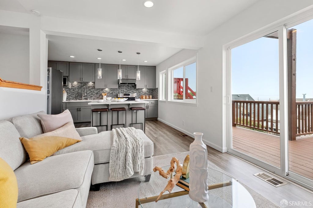 Charming Spanish Mediterranean style home with panoramic city and bay views! This thoughtfully designed 4-bedroom, 4-bath residence offers space, convenience, and comfort for multi-generational living. Key features include a remodeled kitchen with quartz countertop and island, stainless steel appliances, dual pane windows, laminate wood flooring throughout the main level, and brand-new carpet adding warmth and comfort in the generously sized bedrooms. Its versatile attic is transformed as an office & fun playroom, perfect for growing families. The lower level offers a large bedroom with walk-in closet, full bath, and kitchenette ideal for extended family or can be used for rental income. Enjoy stunning city views from its decks for relaxation or entertaining. Just a short stroll to the neighborhood park with basketball courts and conveniently close to schools, transit, shopping, restaurants and the vibrant Mission District. This unique home offers the best of urban living with the flexible space your family needs to grow!