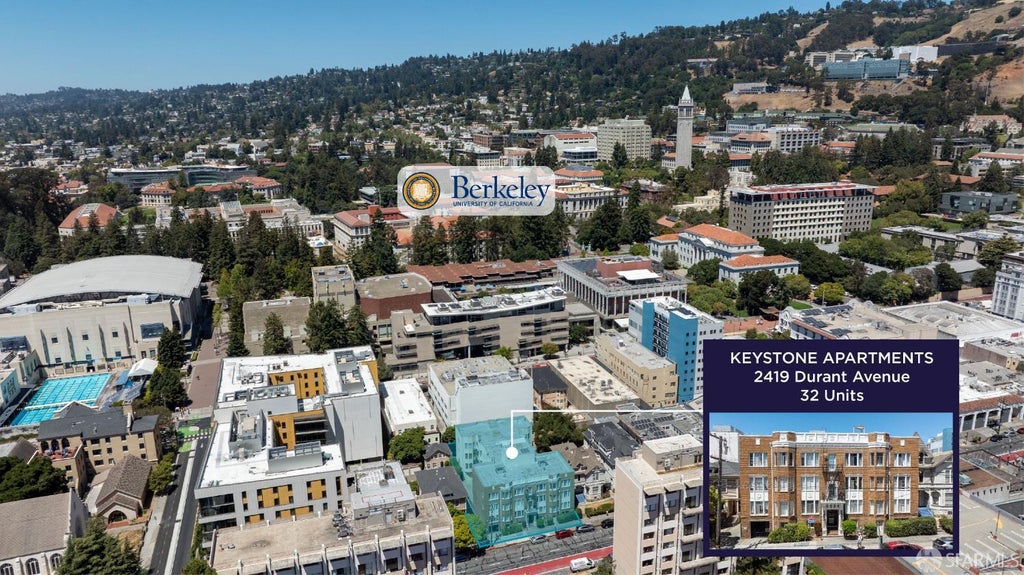 The Cushman & Wakefield Northern California Multifamily Capital Markets Group is pleased to present The Keystone Apartments, a distinguished 32-unit multifamily asset in an irreplaceable location at 2419 Durant Avenue in the highly sought-after Southside neighborhood of Berkeley, CA. Built in 1924, this 18,543-square foot property boasts classic architectural character and presents a prime investment opportunity just steps away from the world-renowned UC Berkeley campus. Offered for the first time in more than 50 years, The Keystone Apartments represents a truly unique chance to secure a generational multifamily investment in one of the Bay Area's most dynamic rental markets. The property's unit mix consists of 20 studios and 12 two-bedroom units, catering to a diverse range of tenants, including UC Berkeley students, faculty, and local professionals seeking direct adjacency to UC Berkeley. The Property offers significant value-add potential for an investor to implement property upgrades and reposition the asset as a student focused housing option. The property can be purchased individually or as a 3-property, 68-unit portfolio with The Leroy Apartments (2411 Durant Avenue - 9 Units) and The Castle Craig Apartments (2525 Durant Avenue - 27 Units).