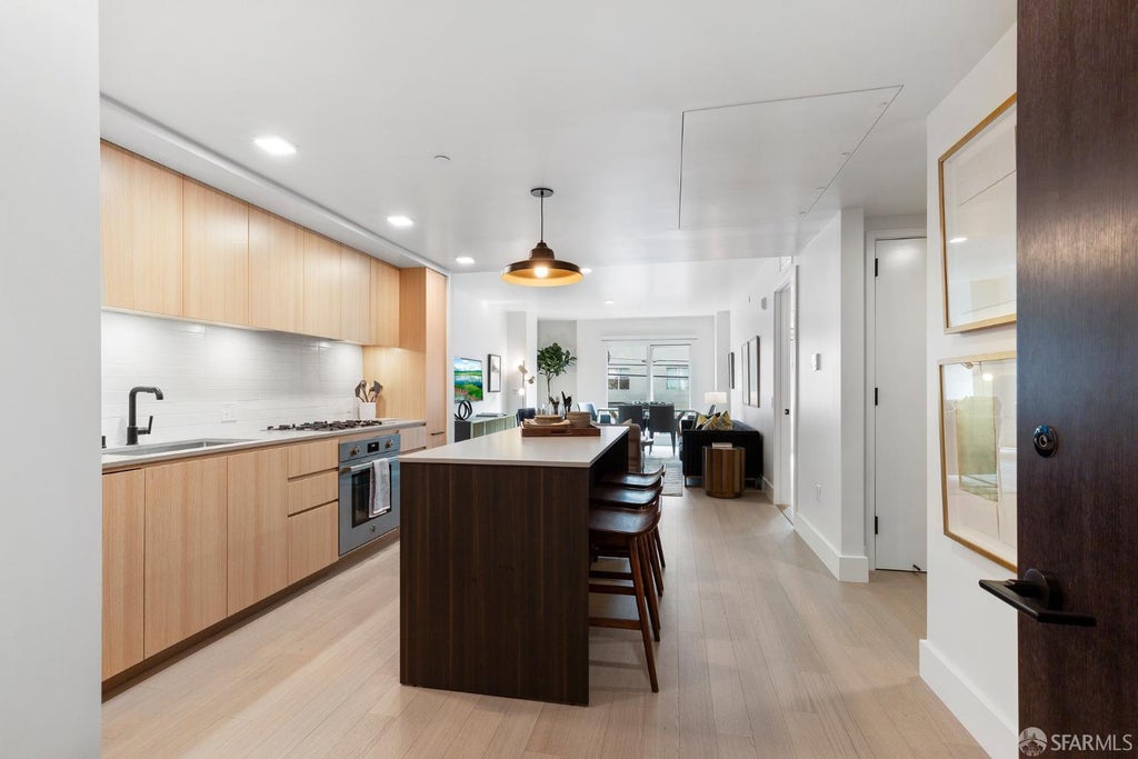 Introducing the final release of units at 950 Tennessee Street. Recently constructed in 2020, 950 Tennessee represents an opportunity to own in one of the most exciting neighborhoods in San Francisco: the Dogpatch. For the city dweller looking for a peaceful home with modern amenities, Unit #218 is a 2 Bed, 2 Bath condo overlooking tree-lined Tennessee Street. Danish-inspired interiors invoke a sense of warmth with clean lines, quality materials, and beautiful fixtures throughout, including Domus & Domus cabinetry, Caesarstone counters, a large kitchen island, built-in closet organizers, and Bosch and Bertazzoni appliances. Completing this home are wide-plank oak flooring, in-unit washer and dryer, A/C, and 1 car parking. Storage is also available for purchase - inquire for more details. 950 Tennessee residents enjoy amenities such as an attended lobby, rooftop lounge with panoramic city and bay views, landscaped courtyard, dog spa, and bike room. Enjoy local favorites such as Wooly Pig, Ungrafted, Neighbor Bakehouse, and Marcella's all within a half block radius. Ideally located near Esprit Park, Chase Center, Pier 70, easy freeway and public transit access, and much more. *Photos are from another unit and representative of layout and finishes.*