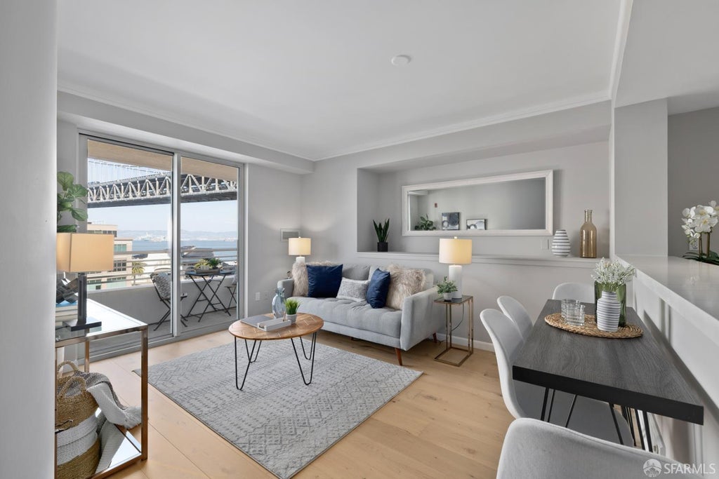 No open house until current tenant fully move out by of the month. Available on 11/1/25. Amazing Bay Bridge Views from living room and patio. Light-filled Jr.1 bedroom, 1 bathroom condo at The Portside in sunny South Beach neighborhood. Freshly painted with brand new wide-oak hardwood floors. The large window has views of water and bridge where you can watch the sailboats drifting by the day as well as enjoy the captivating bridge light show at night. Well-equipped kitchen with new custom countertops and backsplash plus all new stainless appliances. In-unit laundry, new washer/dryer. Sleeping alcove with a walk-in closet. The Portside is a well-managed condo community with luxury amenities including a pool, hot tub spa, gym, on-site management. 1 car assigned parking and deeded storage unit. Located just one block to the Embarcadero. Take a stroll down to the ferry building for Farmers Market and great food at world class eateries, or take in a baseball game at Oracle Park or Warriors Stadium. Close to top tech companies, freeways, and public transportation. Unit is still tenant occupied until end of October. 1 car parking included at no additional fee. Available to move in November 1st, 2025. Please contact agent Michelle (415)312-6688 for a showing.