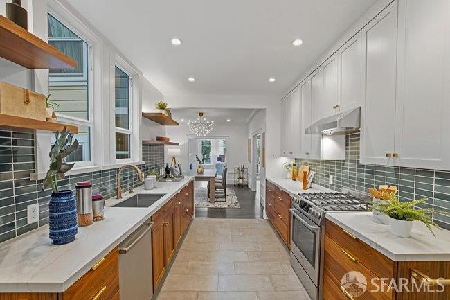 Perfect blend of classic charm and thoughtful modern upgrades in a prime NOPA location. Marina-style 2BR + Sunroom, 1.5 BA full floor condominium also includes 1 car tandem PK, storage, shared garden, and bonus/flex rooms behind the garage.Spacious living and dining areas are bathed in natural light through south-facing double-pane windows and flow into a beautifully remodeled kitchen with Bosch appliances, quartzite countertops, Heath tile backsplash, radiant heated floors,in-kitchen laundry. Bathroom features ceramic heated floors, a steam shower, Toto bidet, and glass doors for natural light.Storage abounds with a hidden bookcase entry to a wine cellar, custom built-in closets, and a large shared storage area in the garage. One-car tandem parking is included. The shared backyard is an entertainer's dream with turf, smart irrigation, cedar fencing, low-maintenance landscaping, and a premium DCS barbecue. Included are Nest thermostat and smoke alarms, and a 4kW solar system for energy efficiency. W/smart-home amenities, abundant storage, and inviting indoor/outdoor living, this home balances convenience, comfort, and modern style in the heart of the city. Please note: s.ft (2049) is from condo map and includes both the main level (1506) and the separate bonus space (543)