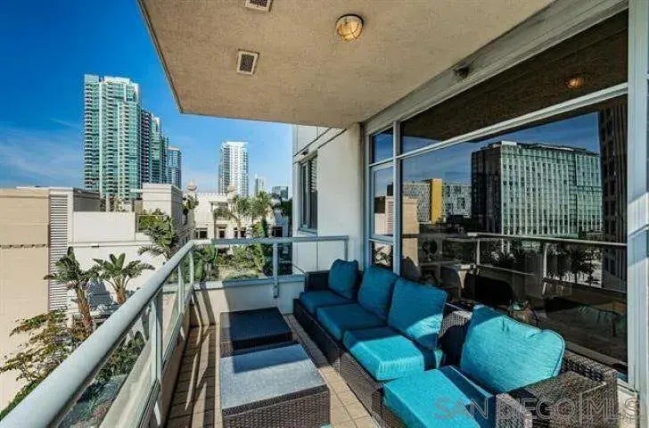 Enjoy the sunsets, the breeze and views of the bay and downtown from this fully furnished, 7th floor, west facing unit in the highly desirable Electra building. Situated in one of San Diego's most iconic buildings, this split bedroom design features 1 bed & bath on either side of the unit, cozy living room with fireplace, upgraded kitchen with granite counters, SS appliances, & a full sized, stacked washer/dryer. Enjoy a convenient, urban lifestyle with just a short walk to restaurants, cafes, shops, SD bay, Gaslamp Quarter, Little Italy & public transportation. Electra offers great amenities that include a pool/ jacuzzi, treatment rooms, gym, BBQ area social lounge & concierge.