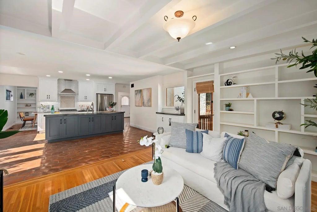 This captivating Mission Revival-style residence exudes timeless charm and character. Situated mere blocks away from the vibrant dining and shopping scene of Mission Hills, this home offers a tranquil retreat in this highly sought after neighborhood. Discover delightful features such as Saltillo tile floors, wood burning fireplace, stain glass window, and built-in shelving throughout. The newly remodeled kitchen, with custom cabinetry and paint colors, offers a generously sized island overlooking the living room where you can enjoy panoramic treetop views. The newly remodeled bathroom features a soaking tub, shower with decorative tile, and high-end Toto toilet. In addition to the two bedrooms, this residence features a charming detached flex-space structure, perfect for an at home office, gym, artist studio or ADU conversion. The front entry has been tastefully landscaped with poured concrete and automatic gate for driveway parking. Embrace the opportunity to call this home yours today!