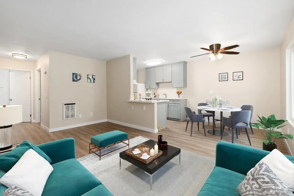 Welcome to upgraded condo in the heart of San Diego!This home is located in a gated community, offering both security & tranquility.Step inside & discover a recently upgraded interior featuring a newer vanity, lighting, mirror & tile flooring in the bathroom.The modern & inviting atmosphere is further enhanced by newer kitchen cabinets, quartz countertops & appliances.The freshly painted walls complement the laminate new flooring.Parking is assigned & guest parking's.Water & trash included in HOA fees.VA approved complex and eligible for B of A down payment & closing cost grants.