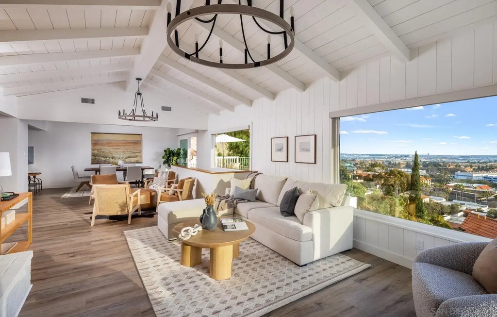 Gated residence located in highly sought-after Northwest Mission Hills, just above historic Old Town. Ideally perched on a scenic 17,000+ square foot lot, this contemporary coastal home features a sprawling single-level layout with an abundance of large windows offering stunning panoramic views of the San Diego Harbor, Point Loma, and Pacific Ocean beyond. This property has been completely remodeled from top to bottom. The open interior showcases vaulted beamed ceilings, custom built-ins, soft white wood paneled walls, and a magnificent fireplace on prominent display all creating a tranquil ambiance throughout. Immaculate living areas flow from one to the next with three-bedrooms and two full baths in the main house. Additionally, there is 430+ square foot guest house below with its own private entrance, kitchenette and patio, ideal for use as a home office, private guest quarters, or rental for extra monthly income.
