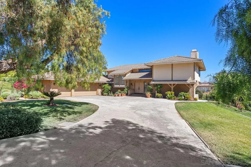 If you appreciate greenery and a serene, private garden, this one-acre parcel home is for you! This custom-built home, filled with natural light, offers 5 spacious bedrooms and 4 full bathrooms. The beautiful, tiled deck overlooks a succulent and drought-tolerant garden, a vegetable and herb garden, and numerous fruit trees and a Green House. The first floor features a spacious living and family room, a formal dining room, a kitchen facing the garden, and an office-bedroom. Enjoy whole-house control of lighting through a switchboard, indirect lighting, and massive oak bookcases. The bottom floor, with an independent entrance, can be used as an ADU. It includes one bedroom, a kitchenette, a large family room, a full bathroom, and a cedar-lined sauna. The second floor provides privacy with 3 bedrooms. The large main bedroom offers a stunning mountain view, and the spacious full bathroom includes a spa. Located near Westfield North County Mall, California Center for the Arts, shopping, restaurants, several golf courses, Palomar Medical Center, and freeways, this home combines tranquility with convenience. Note: Possibility to build an ADU. Buyer to check with the city and/or county for confirmation.