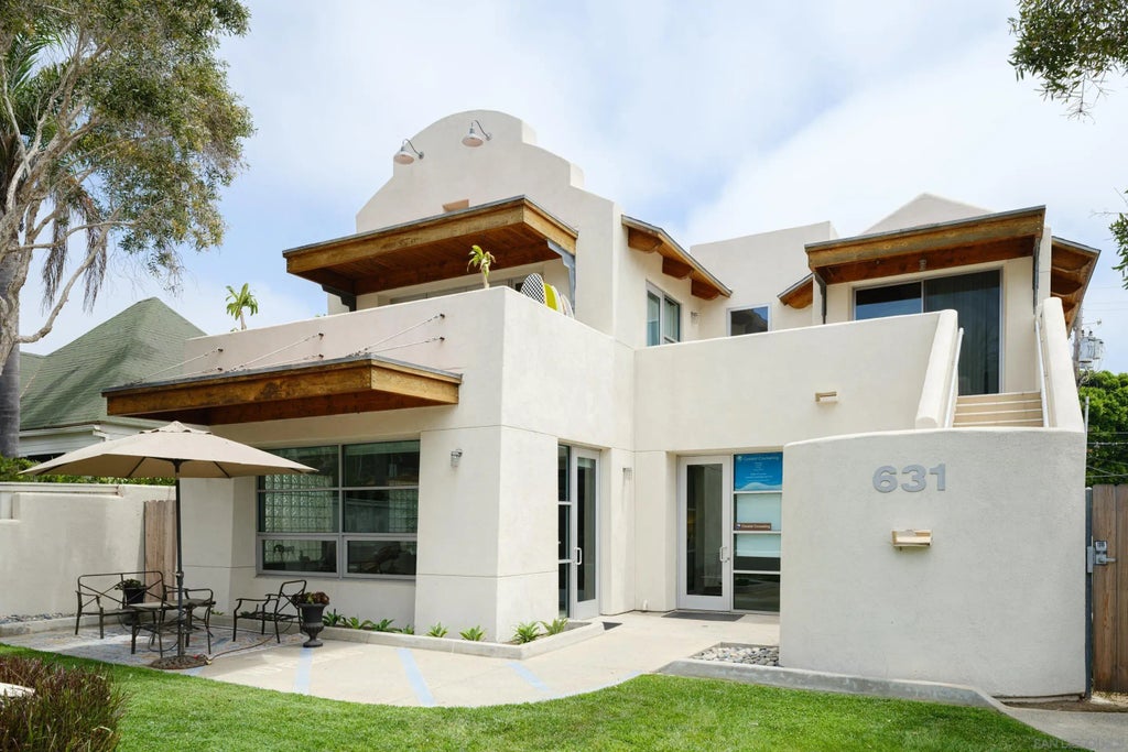 Discover this remarkable mixed-use property, ideally situated just a block from the beach and two blocks from the charming downtown Encinitas. This modern architectural gem, built in 2005, offers an unparalleled location and a captivating design. Boasting vaulted and exposed wood and steel ceilings, the building combines contemporary elegance with a spacious, airy atmosphere. It includes three well-appointed office spaces, ideal for businesses seeking a prime location, and a beautifully designed two-bedroom plus den apartment that provides an opulent living space, perfect for those who want to enjoy the beach lifestyle. Expansive patios on both the 1st and 2nd floors maximize the property’s indoor/outdoor living atmosphere, offering the perfect setting for relaxation and entertainment. Built to the highest standards, this property ensures modern amenities and a stylish, durable design—a two-car garage with an additional carport and uncovered parking spaces. Just a block away from pristine beaches and a short two-block stroll to the heart of downtown Encinitas, with its vibrant dining, shopping, and entertainment options. Across the street, Pacific View Art Center opens in August 2024 and will house: Visual Arts, Literary Arts, Performing Arts, music, and much more, this unique property offers the best of coastal living and urban convenience.
