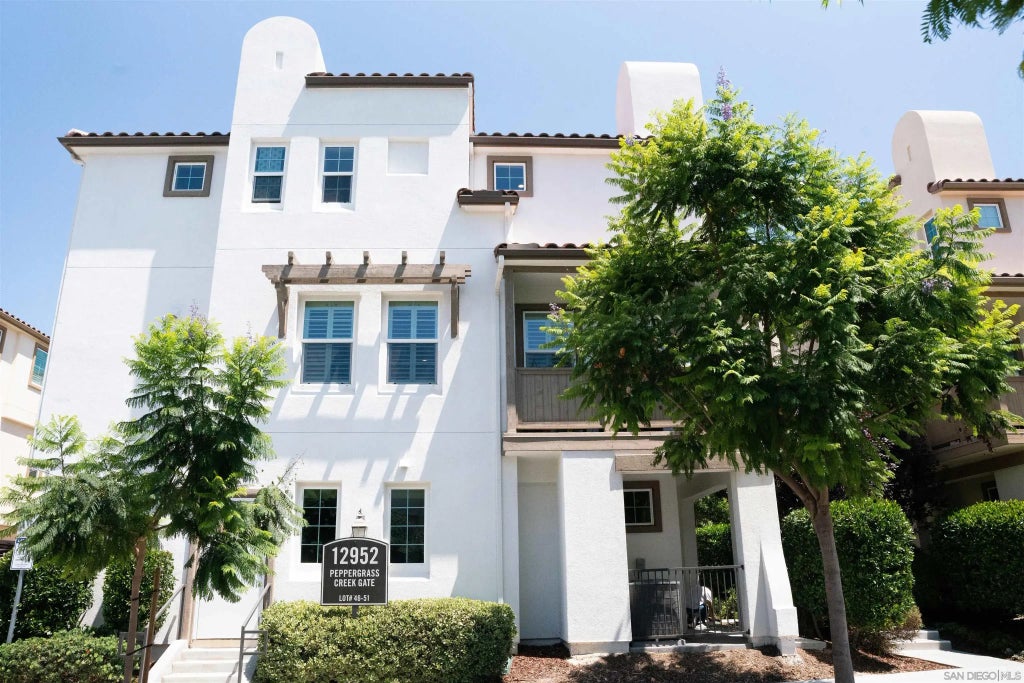 Sunny bright 3-story townhome located in the central vicinity of Pacific Highlands Ranch master planned community. This corner unit features 4 bedrooms including 1 bedroom with full bathroom downstairs, spacious great room & dining room, gourmet kitchen with white cabinets & all stainless steel appliances, one-year new refrigerator & microwave, quartz counter top, custom window treatments including shutter blinds & roller shades, Dual thermostats control upstairs & downstairs separately, full size wrap around balcony. Just a short walk to the PHR Village for shopping & dining, Trader Joe's, restaurants, banks, hospitals, city park, sports stadium, dog park, future new library, Pacific Trail Middle school & Canyon Crest Academy (CCA). A very quiet, convenient location, minutes to freeway, beaches!