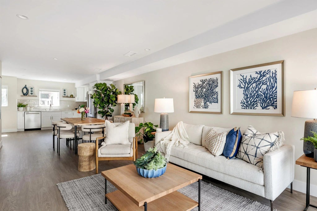 The BLEND is a premier collection of 14 upscale townhomes, completed in 2023, nestled in the vibrant heart of PB. Drawing inspiration from the coastal landscape and contemporary architectural styles, these luxury residences embody the progressive spirit of this special community while harmoniously blending with the beloved local beach scene. This particular unit showcases contemporary finishes, top-tier appliances, and captivating bay/city views from the roof-deck. The great room offers a welcoming area for entertainment and is thoughtfully positioned between the two bedrooms, ensuring privacy from one another. The primary suite features 11 ft ceilings, a balcony and direct access to the rooftop deck. Enjoy the luxury of being conveniently located near the finest restaurants, shops, Mission Bay Golf and iconic Kate Sessions Park. Only 1.5 miles to the white sand beaches and less than a mile from Crown Point Park. Easy access to the freeway and Balboa Trolly Station.