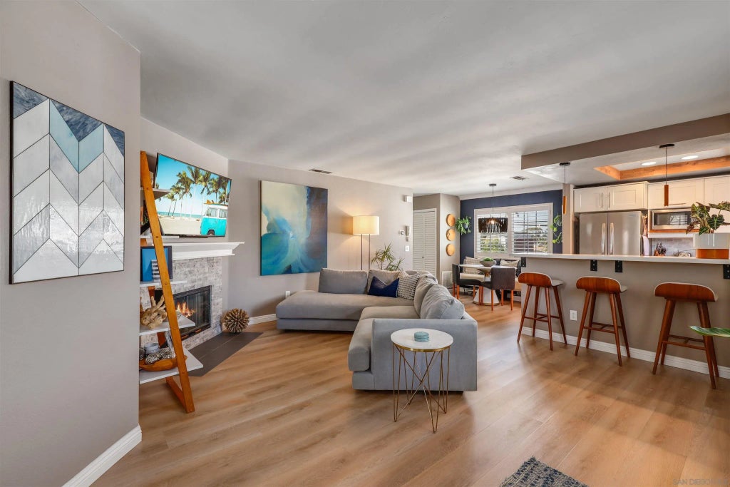 Unbelievable opportunity awaits! Enjoy this fully upgraded, top floor, corner unit that backs to a quiet alley and has LOW HOA dues. This quaint, gated complex is located on a small cul-de-sac, putting you mere blocks from all the Hillcrest amenities, while maintaining privacy. An open floor plan is illuminated with abundant natural light and provides seamless flow between the living room, dining area and kitchen. Gather in front of the cozy fireplace in the living area for added ambiance.