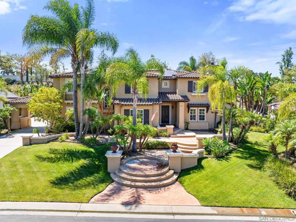 Experience unparalleled luxury in the exclusive Bel Etage gated community of Santa Fe Valley. This stunning two-story estate. set on over half an acre, offers an exquisite blend of elegance and modern comfort. Boasting 5 expansive bedrooms and 5.5 nicely appointed bathrooms, this home is designed for both grand entertaining and intimate family living. The interior features a private office and a versatile wine cellar currently used as a children's play area, allowing you to personalize the space to fit your lifestyle. The heart of the home opens to a resort-style backyard, where a sparkling pool, cascading rockslide, and tranquil waterfall create a serene oasis. Unwind in the spa, or entertain guests in the lush, spacious lawn area, complete with a covered seating area and a cozy fireplace. This property embodies the ultimate California lifestyle, offering private luxury, and an enviable outdoor living space-all within the secure and sought after Bel Etage community.