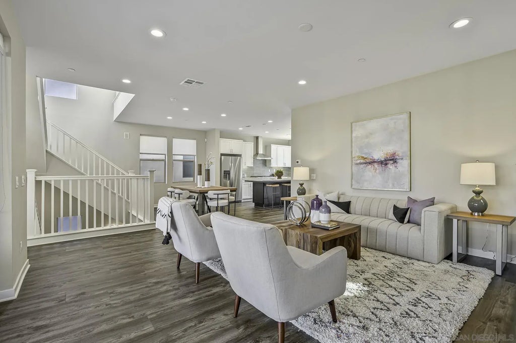 Welcome to Sur 33 at Del Sur! Experience unrivaled modern luxury in this upgraded Plan 3XC tri-level home, featuring a bright, open-concept floor plan. Enjoy the expansive living area, gourmet kitchen, and eco-friendly-owned SOLAR panels. The first floor has a versatile bedroom and full bath, while the upper levels offer an office and half bath by the kitchen, third level secondary ensuite, a cozy loft area, and a luxurious master suite with dual vanities, soaking tub, and walk-in shower. Don't miss out on this remarkable home in Del Sur—schedule your private tour today!