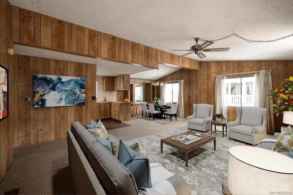 Amazing opportunity to own in the exclusive Royal View Gardens, a resident owned 55+ community. Premium location with west facing sunset views of the mountains. With extra large room sizes and two full bathrooms, there is tons of potential to make this home your own. Entertain company with the private yard space, featuring a gazebo, playground, sitting area, and storage shed. Steps away from the clubhouse and pool, this home is perfectly positioned to fully enjoy the community. Also, one of the LOWEST space rents in San Diego County. BBQ in the sunshine, watch the sunset from your backyard, walk to the sparkling pool, you will love life at Royal View Gardens.