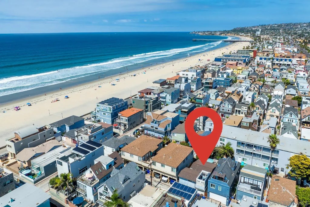 Experience the ultimate coastal living at 733 Whiting Ct in this charming Cape Cod cottage in the heart of North Mission Beach, nestled just six houses from the oceanfront one minute walk to the Bay sidewalk on the Bayside. Just steps away from the iconic Catamaran resort. This exquisite property seamlessly blends comfort and charm, offering an unparalleled coastal lifestyle. Relax on the private stone patio with a fire table, perfect for enjoying your morning coffee or entertaining friends. Inside, the open floor plan boasts a sleek kitchen with high-end appliances and quartz countertops, flowing seamlessly into inviting living spaces. Enjoy a dedicated guest room or home office on the entry-level, while the master suite on the second level features a private deck perfect for relaxing, and just enjoying the ocean breezes. Secure parking is provided in the single-car garage with alley access. Situated in the heart of Mission Beach, the cottage is steps away from vibrant restaurants, unique boutiques, and water activities, from swimming and surfing to kayaking and biking. Don't miss this opportunity.