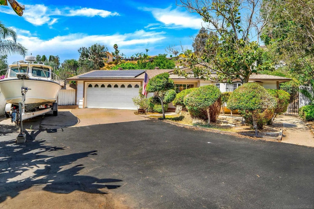 Welcome to this beautiful 4 bed, 2 bath single story home nestled in the scenic community of Lakeside. Located at the end of a quiet cul-de-sac, you’ll appreciate its privacy and timeless design. The home is solar equipped and has been updated to include new: dishwasher, garbage disposal, vanities in both bathrooms, a new laundry room, new Tesla solar inverter, and new turf and tile in the back yard. The kitchen offers tons of cabinet space, soft-close cabinets, granite countertops, and stainless-steel appliances. The living room with recessed lighting, ceiling fan and large hearth fireplace is perfect for cozy family nights and entertaining your guests. The master bedroom is complete with an en-suite bathroom and walk-in closet. And three additional bedrooms provide plenty of room for family and guests. Need room for a home office, playroom for the kids or workout room for all? You’ll enjoy the large bonus room with new flooring! And the large backyard set on a spacious 15,721 sq ft lot offers a sparkling pool and covered patio that extends your living space and is an entertainer's paradise, great for outdoor dining, gardening, or simply relaxing by the pool. Love fresh juice and fruit? Your personal orchard awaits with pomelo, naval, mandarin, lemon, pomegranate trees, and mature grape vines! The two-car garage is wired for a Tesla inverter to accommodate your E/V vehicle needs. And the extra-long driveway has ample parking for 4 cars and your RV, boat and toys. So many options! Near parks, schools, hiking trails, shopping and easy freeway access. This is a must see!