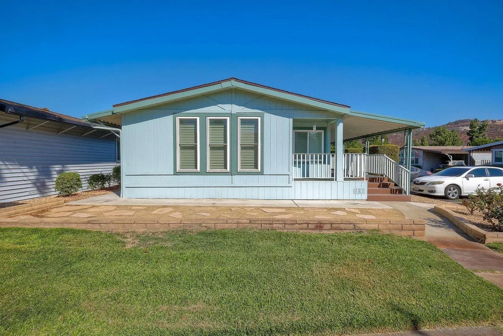 Located in the heart of a serene 55+ gated community, this well-maintained manufactured home offers spacious living and comfort. The open floor plan includes a large eat-in kitchen that seamlessly connects to the dining area and a bright living room with vaulted ceilings and plantation shutters. Dual-pane windows throughout provide energy efficiency and keep the home comfortable year-round. The master suite features a luxurious bath with both a soaking tub and separate shower. A dedicated laundry room offers ample storage. Outside, you'll enjoy a large front porch, 2-car carport with additional guest parking conveniently located nearby, as well as a generously sized storage shed for your extras. For convenience there is a wheelchair lift near the carport. This home combines comfort, functionality, and community living!