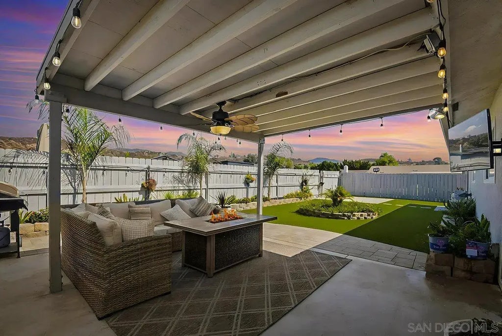 Recent APPRAISAL in at $850K!!! This turn-key Lakeside home offers: Optional 4th bedroom, 180-degree mountain views, custom patio/pavers, turf yard, upgraded HVAC system, stainless appliances, house fan, new paint throughout, LOREX home security/cameras, new front landscaping, & a FULLY PAID SUNRUN/COSTCO solar system! AVG. monthly SDGE bill: $7.00 (gas), AVG. yearly electric TRUE-UP bill: $250-$300 (for the entire year/electric). Spa slab & electrical already installed and ready to go (backyard). Stainless appliances, front loading washer/dryer and patio flatscreen TV all convey. Lakeside has long held a reputation as a "cowboy town" and "rodeo town," due to its rural setting, ranches, abundant horse ownership, and their 58-year-old Lakeside Rodeo! Located near lakes (El Cap/Jennings), schools (walking distance), shopping, parks, and freeway access (52-125-8), this location can’t be beat.