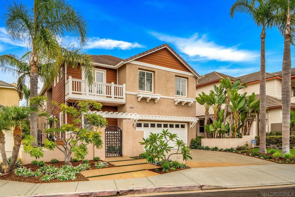 Welcome home to 4652 Terraza Mar Marvelosa. This exquisite, contemporary 5 bedroom, 4.5 bathroom home features a primary retreat plus two additional bedrooms with ensuite bathrooms including one on the lower level. This modern, open-concept layout is accentuated by high-end finishes such as wrought iron stair balusters showcasing a two story entrance, Wolf and Sub Zero kitchen appliances with full size wine refrigerator and Carolina hard wood floors throughout. The gourmet kitchen seamlessly flows into the family room with a wall to wall sliding door opening to your landscaped backyard and built in bbq, perfect for hosting and entertaining. Relax under the coffered ceilings on your backyard patio or on the balcony off the primary bedroom which overlooks a spectacular and expansive canyon view. Tour today to experience refined living in this exceptional Carmel Valley home.