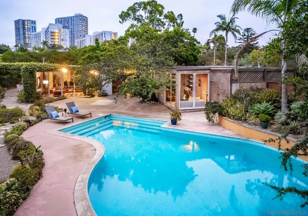 Designed by the famous Artist and Oceanographer Judith and Walter Munk, this coastal home embodies timeless charm and stunning ocean views. Munk's signature design reflects a deep understanding of coastal aesthetics and functionality. The property features a serene pool, private walking path through Sumner Canyon to the beach below, a covered driveway, and a versatile detached guest house with a full bathroom. The 19,400 square foot lot and private drive on the back and side of the property create exclusive use and privacy. Situated in the Scripps Estates Association, this exclusive community offers access to UCSD, La Jolla Shores and UTC amenities. Experience coastal living at its finest with endless potential to enhance your dream home.
