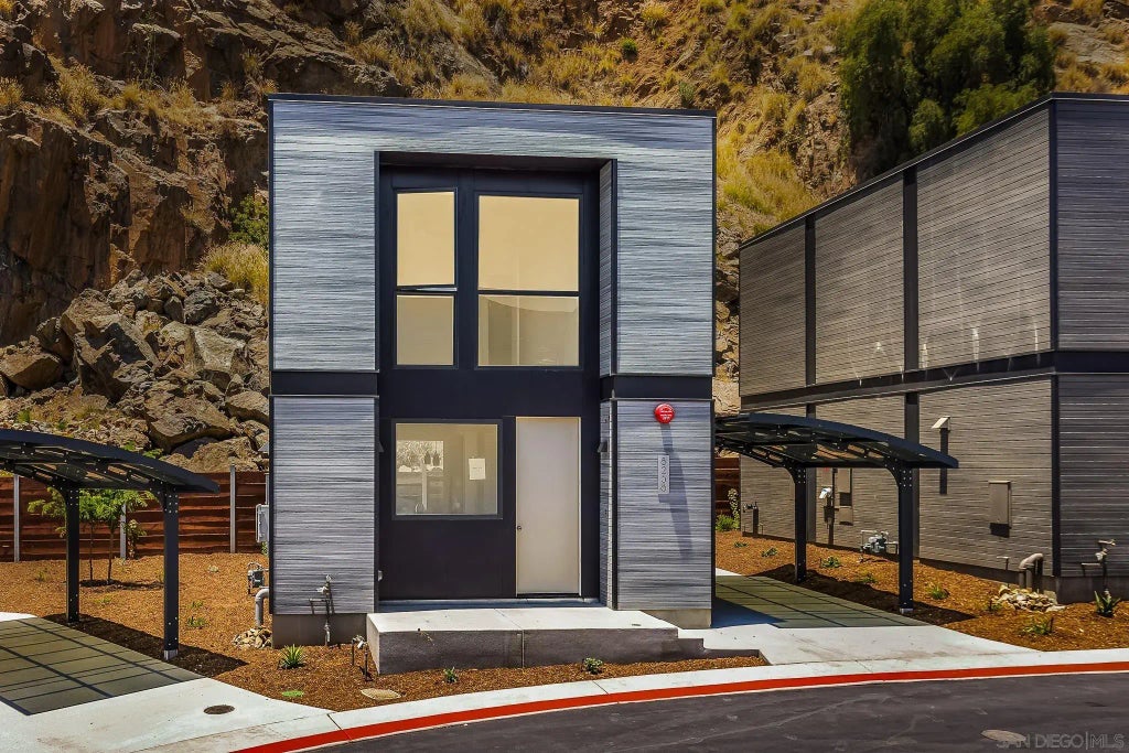 New Construction - Located in the new Cantera project, the Andesite model is a modern, unique, and custom-designed home, offering a one-of-a-kind living experience tailored to you in an upscale community setting. Nestled in a former rock quarry within walking distance of both the Spring Street trolley and the vibrant La Mesa Downtown Village. With a modern touch, it boasts two bedrooms and two baths, offering both comfort and convenience. The home's eco-friendly features include paid-for solar panels, allowing for energy-efficient living, and mini-split AC/heat system that allows you to control the temperature on each floor separately. Its location provides stunning views, while also ensuring privacy from the hustle and bustle of city life. Inside, the house is adorned with custom cabinets, adding a touch of elegance and practicality. Beautiful luxury vinyl plank (LVP) flooring, custom tile backsplash and soaking tubs add a touch of luxury to the bathrooms. The kitchen is equipped with sleek Cafe appliances, custom cabinets made in Germany and designed by DNA Design Group, soft-close drawers, and a stylish center island, perfect for cooking and entertaining. Outside, each home has a state-of-the art glass carport with UV protection, driveway space for 2 cars, and is wired for EV charging. Additionally, the home features low HOA fees, making it an attractive option for those seeking a blend of luxury and affordability in a prime location. Complex is VA approved!