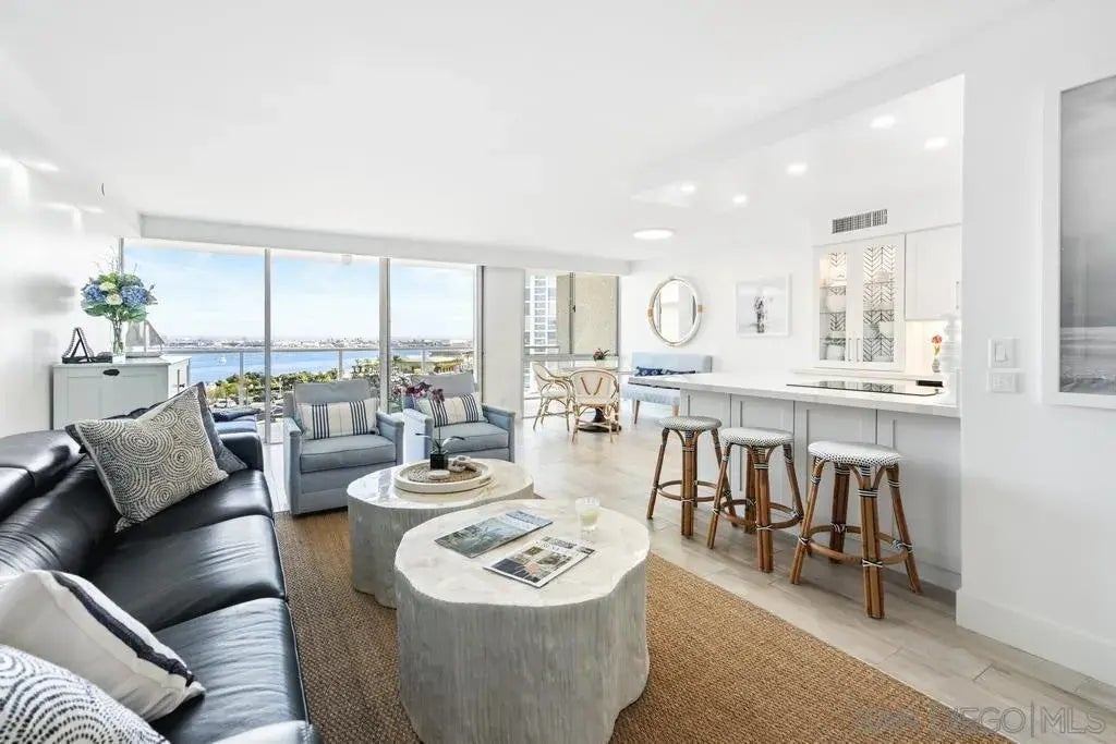 Live the Coronado dream! Situated within the highly coveted private beachfront community of Coronado Shores, this beautifully renovated and stunningly furnished 1,058 square foot, 1 bedroom & 1 bath condo will absolutely stop you in your tracks! Located in sought-after La Princesa Tower, this gorgeous and inviting home (with an incredibly large private balcony) offers panoramic views of San Diego Bay, Glorietta Bay, iconic Coronado Bridge, as well as Coronado Golf Course and even the distant mountains. With beautiful furnishings from the likes of Serena & Lilly, this is turn-key living at its finest! One of the larger one bedroom condos in the community (the bedroom itself enjoys a full-size walk-in closet, as well as two large sliding glass door closets), you'll be happy to know that there is a ton of storage space offered throughout. And that's not even counting the sizeable private laundry room which also includes a full size washer & dryer! Living here, you'll marvel at the feeling of privacy that abounds, yet you will still be just steps from the Pacific Ocean and the incredible amenities that Coronado Shores offers its residents!