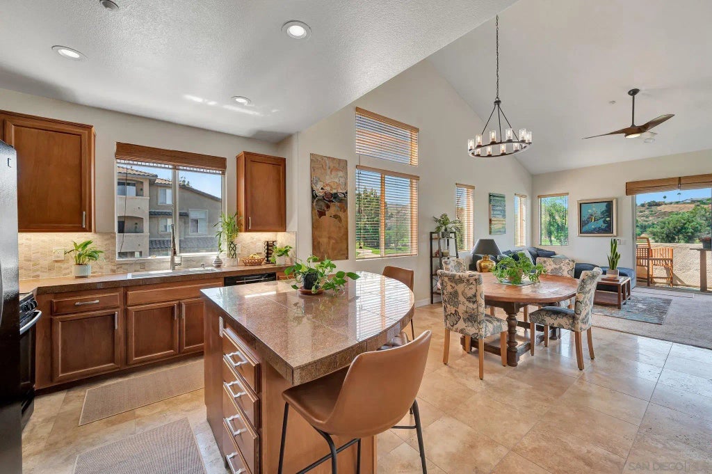 PRICE REDUCTION-Priced below last model match sale (1699SF. 2 BD + Loft/den) that affords one of the best unobstructed views of Singing Hills Golf Course within the complex of Fairway Villas. Majority of similar floorplans sides to another building vs. the subject , which sides to an open area providing an abundance of natural lighting overlooking expansive southeasterly views of fairways and putting green including multiple water features. The spacious floorplan affords vaulted ceilings, fp in LR with balcony, kitchen w/travertine flooring and granite tile counters including breakfast bar, newer updated light fixture and ceiling fans. Primary bdrm has mirrored walk-in closet and dual bath sinks. Loft, on third level, can be enclosed providing a third bdrm or office area.