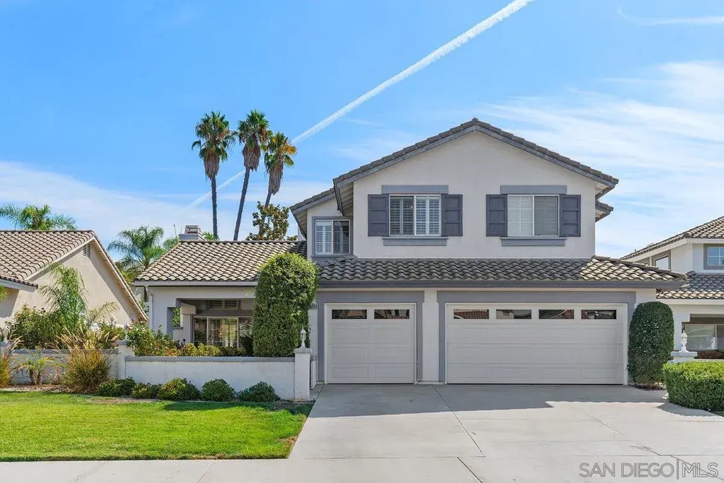 Experience the resort lifestyle in this stunning 2-story pool and spa home, tucked behind a private courtyard entry. With 5 bedrooms, 3 baths, and a 3-stall garage on a spacious 1/4 acre lot, this home offers the perfect blend of luxury and comfort. Step through the double entry doors onto a tiled foyer and take in the elegant wooden staircase and banister. The recently updated kitchen boasts white, glass-faced cabinets, stainless appliances, subway tile backsplash, walk-in pantry, and a Quartz island ideal for culinary creations. A convenient bedroom with a full bath is located on the main floor, while upstairs you’ll find two teen suites with their own private retreats, plus an additional bedroom. The expansive primary suite features a cozy fireplace and a large balcony w/breathtaking views of the sparkling pool and spa. The primary bath offers a separate shower, a soaking tub, and a spacious walk-in closet. Plantation shutters throughout add a touch of classic charm. Outside, the crystal-clear pool with a waterfall spa is complemented by an outdoor entertainment space that includes a fireplace, built-in BBQ, and mini fridge. Relax in the shaded seating areas with outdoor ceiling fans, beneath freshly painted patio covers and separate pergola.