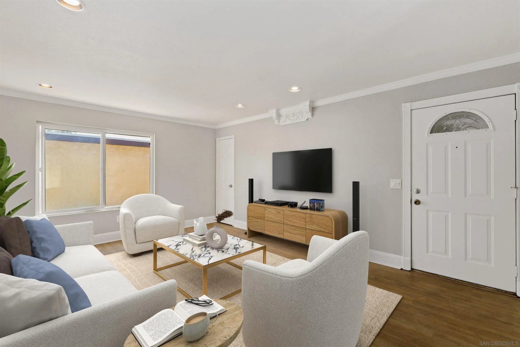 Welcome Home to Harbor Vista! This light and bright unit has been upgraded to feature crown molding, elegant baseboards and laminate flooring. An upgraded open kitchen offers plenty of cabinet space, granite countertops and is open to the dining area for ease of entertaining and daily living. Both bedrooms provide plenty of personal space and storage. Ideally located within the gated community of Harbor Vista, close to the pool, spa and laundry room, with one assigned parking space. Minutes from great shopping, restaurants and downtown San Diego.