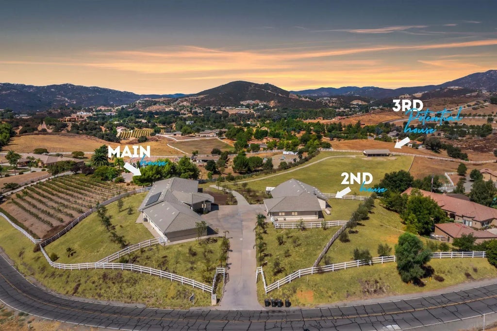 Discover luxury and endless possibilities on this stunning La Cresta estate featuring two modern homes on a large lot with a 3rd home offering ADU potential. Nestled among rolling hills, this private retreat boasts breathtaking views and serene surroundings. Set on 6 acres of usable land, the main home, newly remodeled in 2023, offers 4,100 sqft of open-concept living with 4 bedrooms and 3 bathrooms. The chef's kitchen is a centerpiece, showcasing a Zline dual stove, custom cabinetry, two large quartz islands, a marble backsplash, and a spacious pantry. Floor-to-ceiling windows flood the space with natural light, while custom lighting fixtures and a marble-wrapped fireplace add sophistication. The home also features an 8-car garage, a whole-house fan, tankless water heater, and fully paid solar panels. The second home, remodeled in 2023, spans 1,900 sqft with 2 bedrooms, 2 bathrooms, and a bonus room off the master. Each home has its own septic system and fenced yard, ensuring privacy and versatility. The third dwelling, currently 50% complete at 2,600 sqft, offers ADU potential and could serve as a guest home, horse stable, or additional garage, located next to a former horse ring. Additional features include a chicken coop, automatic gated entry, and income potential through short-term rentals or the additional structures. Whether you're seeking a family compound, equestrian property, or investment opportunity, this estate delivers unmatched value and flexibility. Explore the endless possibilities at this extraordinary property!