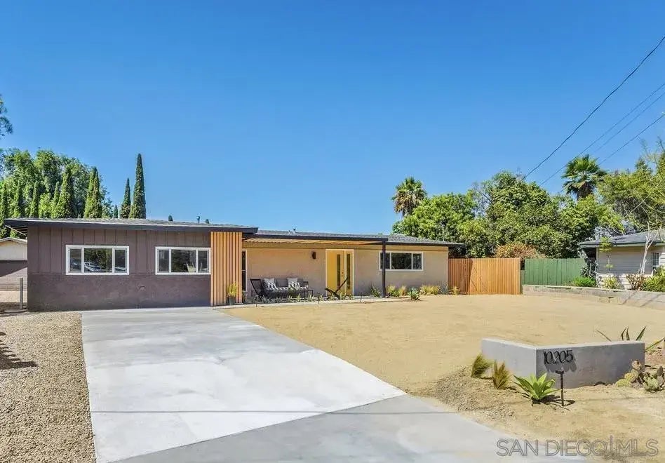 Stunning Mid-Century Modern Oasis with Desert Vibes! This modern beauty has been fully renovated in chic Palm Springs style, offering the perfect blend of color and modern living. Four spacious bedrooms, two sleek bathrooms, and a massive optional den for all your lounging or entertaining needs as well as two additional rooms for home office, game room or home gym. Inside there is tons of natural light with the dual pane windows. The floors are waterproof vinyl plank flooring. Two-toned modern kitchen with stainless steel appliances and a large dining space next to the kitchen. Newer high efficiency HVAC system to keep the house at the perfect temp. Outside, the backyard is huge – imagine the possibilities! Plenty of room to add that pool you’ve always wanted, and endless space for outdoor hangouts. Plus, the garage is ready to be transformed into an ADU or guest house, making it ideal for visitors or even rental income. Or a place for the cars to sleep. This 8200 sqft lot is surrounded by gorgeous, desert-inspired landscaping, this home brings those relaxed, laid-back desert vibes right to your doorstep. In the cute neighborhood of Casa de Oro, its minutes from the La Mesa Village, freeway access, restaurants, and only 15 minutes to downtown San Diego. Images of backyard are renderings to show property potential.